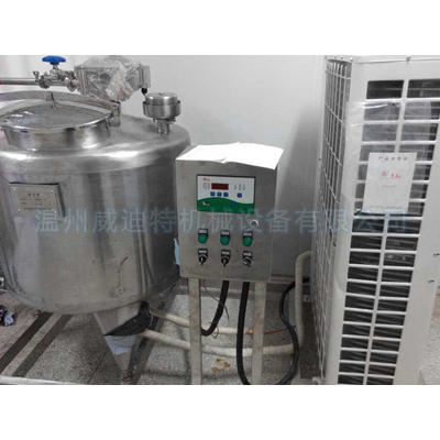 主要由罐體、攪拌器、制冷機(jī)組、電氣控制等幾部分組成。罐體采用雙層不銹鋼制成(SUS304或可根據(jù)客戶要求定制),經(jīng)精密拋光處理,污垢不易積存,易清洗耐腐蝕。在內(nèi)外罐體之間采用了聚胺酯硬質(zhì)泡沫板,該材料具有導(dǎo)熱系數(shù)低、比重輕、強(qiáng)度高、吸水率低的保溫層,保溫性能好。本產(chǎn)品設(shè)計(jì)、制造技術(shù)先進(jìn)、性能可靠,冷卻、保溫性能和衛(wèi)生標(biāo)準(zhǔn)均符合國際先進(jìn)水平。