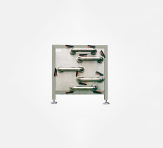 在開關(guān)柜的穿通口上用于開關(guān)設(shè)備的擋板框架。用于擋板框架的模塊式系統(tǒng)以及一種用于裝配由模塊式系統(tǒng)的元件構(gòu)成的擋板框架的方法。為了徹底簡化擋板框架,建議產(chǎn)品的擋板框架模塊化地這樣構(gòu)成,使它由成對使用的框架節(jié)段組裝而成。在此根據(jù)需要為了提供所需的擋板框架尺寸實現(xiàn)組裝。