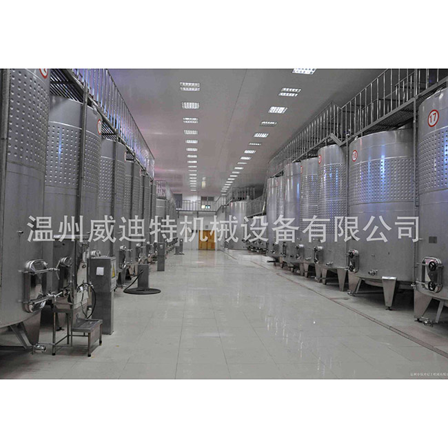 不銹鋼葡萄酒制冷發(fā)酵罐在其外壁的上部中部裝有冷卻套(熱交換器),以使冷卻液在該套中循環(huán),該罐壁用作冷卻的熱交換表面。它在外套中流動(dòng)。為了通過使外套中的冷卻液湍流來增強(qiáng)熱交換效果,將外套的表面點(diǎn)蝕或在外套上設(shè)置螺旋引導(dǎo)板。夾套型冷卻區(qū)與內(nèi)部冷卻型相比具有較低的熱交換效率,允許均勻的熱交換,克服了內(nèi)部冷卻型的各種缺點(diǎn),并且在實(shí)際生產(chǎn)中被廣泛使用。