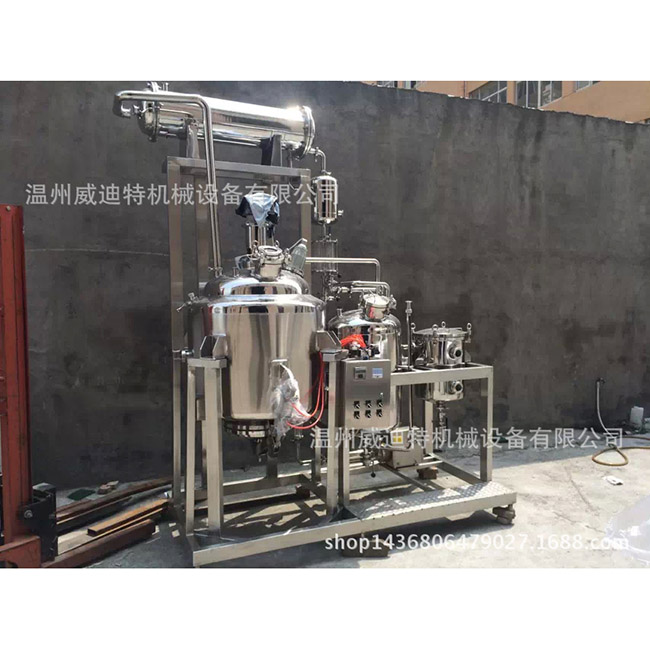 該設(shè)備的整個提取過程均采用封閉式循環(huán)系統(tǒng)完成。可以在大氣壓或大氣壓下提取。無論是金銀花提取,酒精提取,油提取還是其他目的,給定過程中的所有金銀花都必須根據(jù)藥物的性能要求自行切割。提取罐是為金銀花的沸騰提取過程設(shè)計的多功能設(shè)備,可以提取酒精,回收酒精并分離出揮發(fā)油。除提取罐的主要設(shè)備外,它還配備了泡沫阱,冷卻器和油水分離器。這些儀器由不銹鋼制成,與藥物接觸,壓力容器檢查部門對中間層的加熱進行了嚴格測試。在萃取過程中,它由冷凝器,油水分離器等組成,并具有完全封閉的循環(huán)系統(tǒng),同時還從廢物中回收有機溶劑。