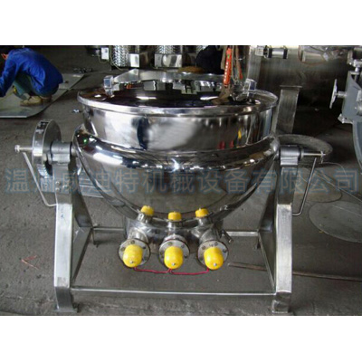 夾層鍋又名蒸煮鍋,通常由鍋體和支腳組成。鍋體是由內(nèi)外由半球形鍋體+直邊+支架組成的雙層結(jié)構(gòu)形式,中間夾層通入蒸汽加熱。